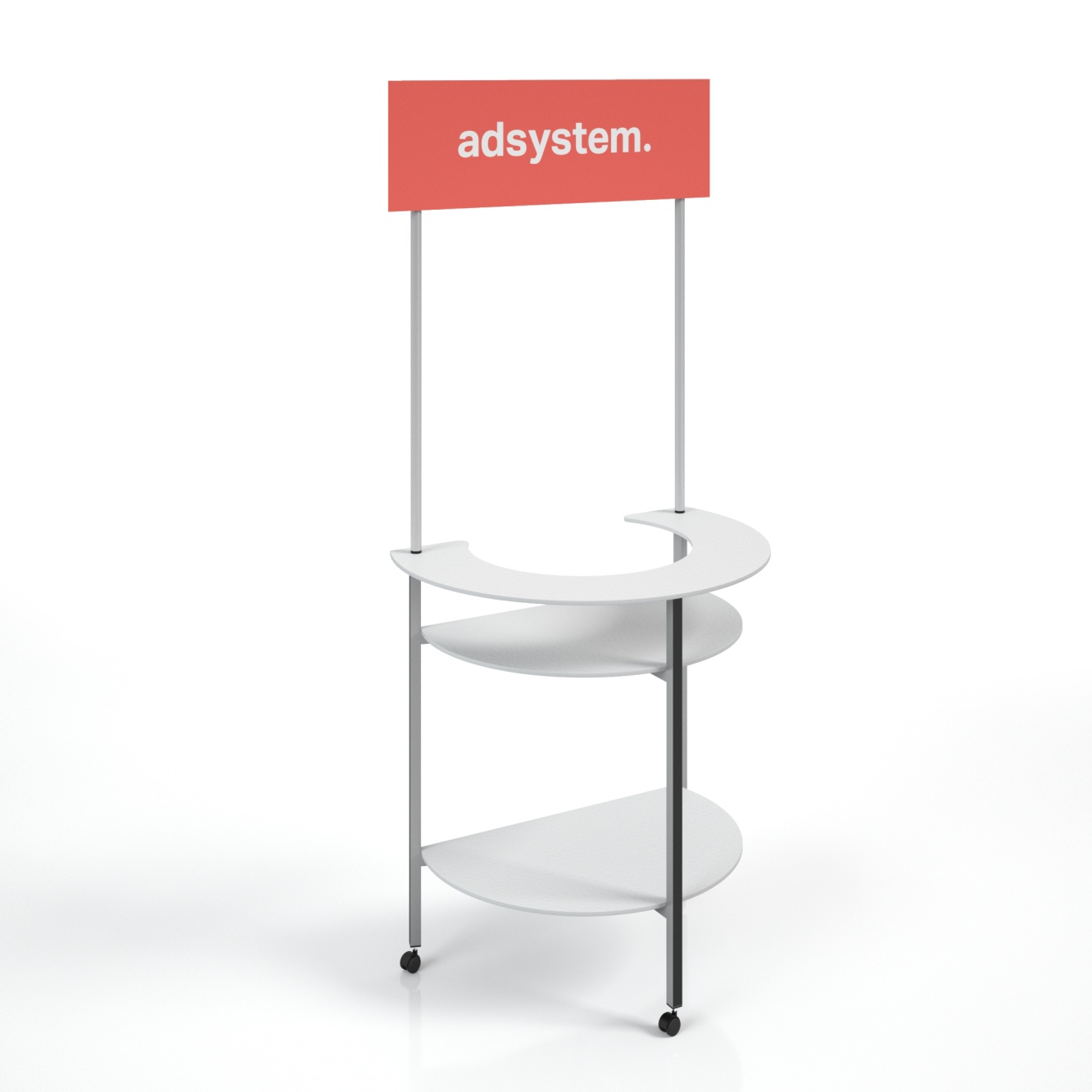 adBox Hit C é um balcão promocional moderno com design de tampo duplo, separando a área de trabalho da zona de degustação. Perfeito para ações promocionais em lojas, garante total conforto no uso.