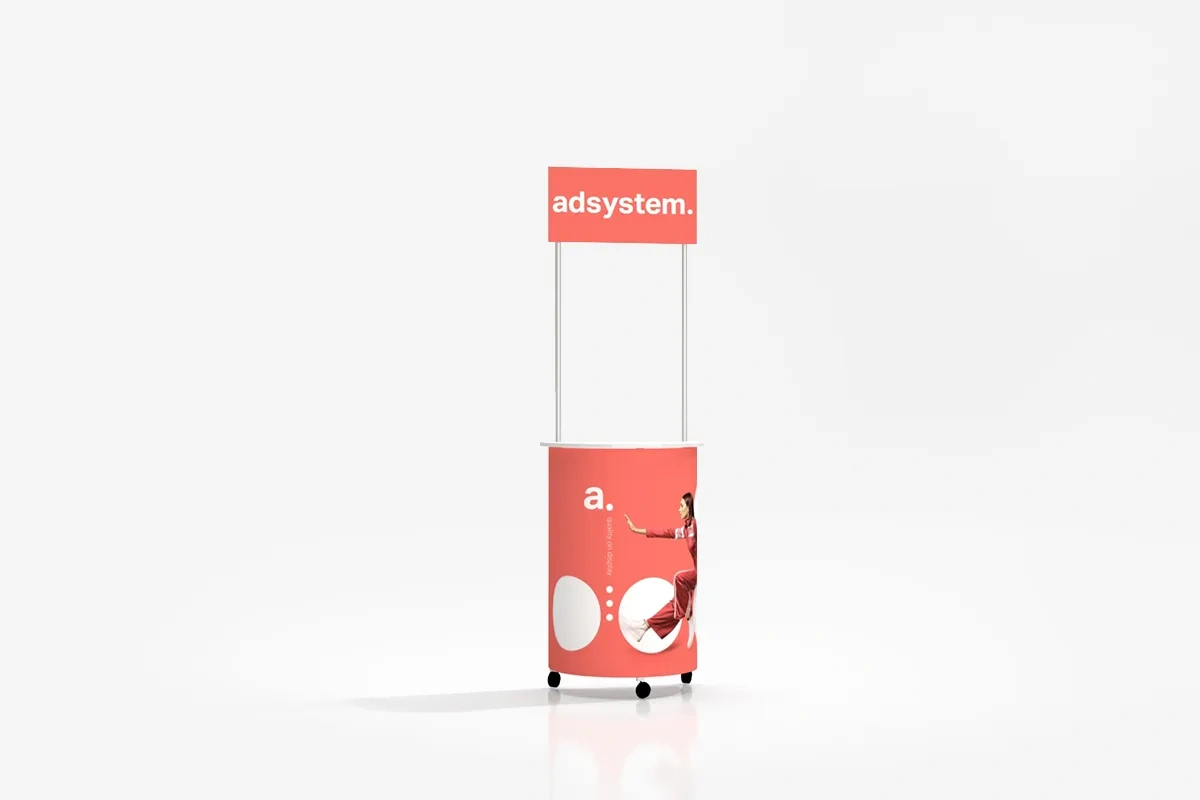 adBox Hit Mini é um balcão promocional que combina mobilidade e facilidade de personalização, sendo uma solução perfeita para campanhas de marketing dinâmicas.