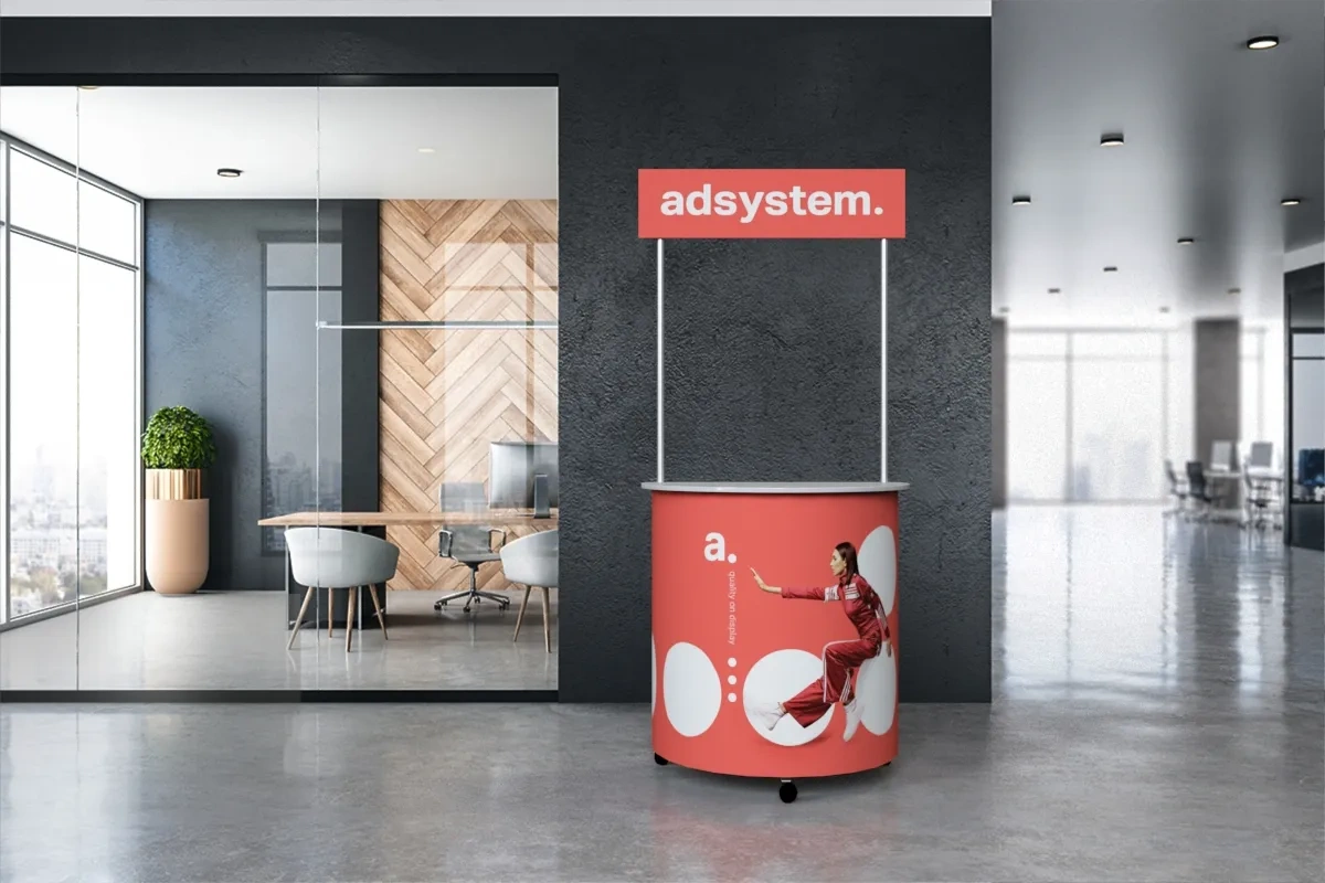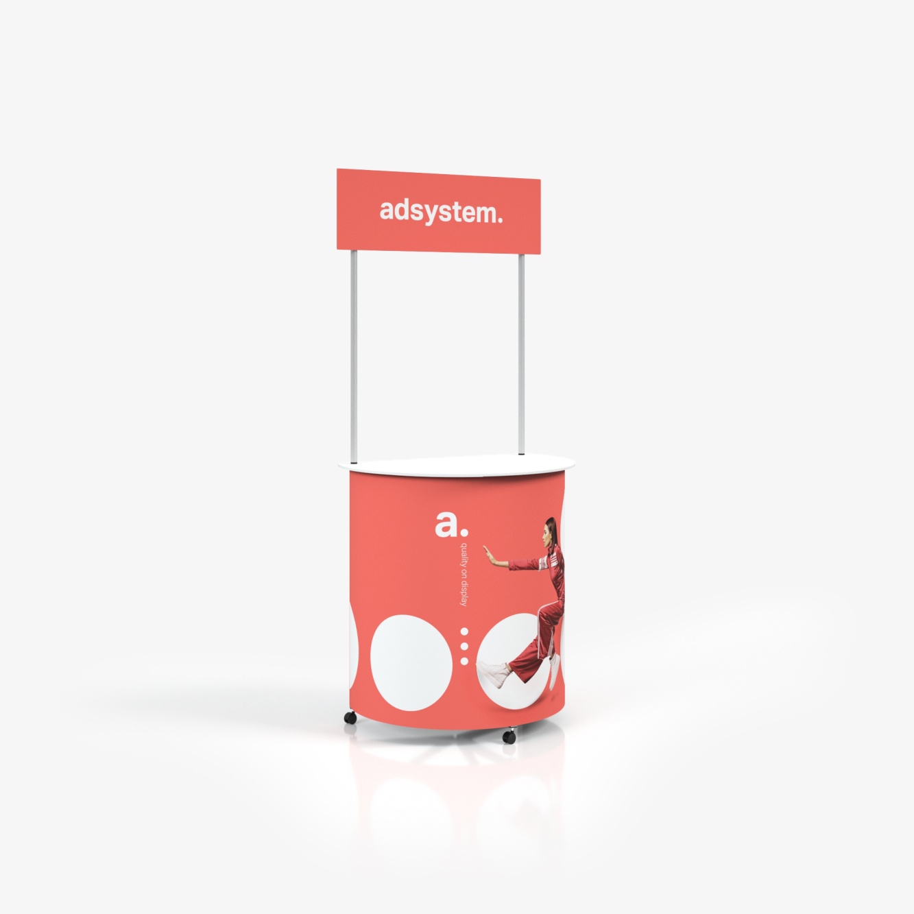 adBox Hit é uma bancada promocional desmontável que se adapta perfeitamente às ações promocionais. Com ela, pode não só destacar a sua marca, mas também apresentar os seus produtos. A bancada é composta por uma estrutura de alumínio, um tampo, uma prateleira, uma sanca e uma impressão personalizada.