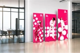Se sua comunicação for apenas de um lado, o adFrame Slim também permite essa configuração – com tecido impresso na frente e material blackout no verso. Independentemente da versão escolhida, o adFrame Slim permite trocar a arte sem precisar adquirir uma nova estrutura – é um investimento para muitas campanhas.