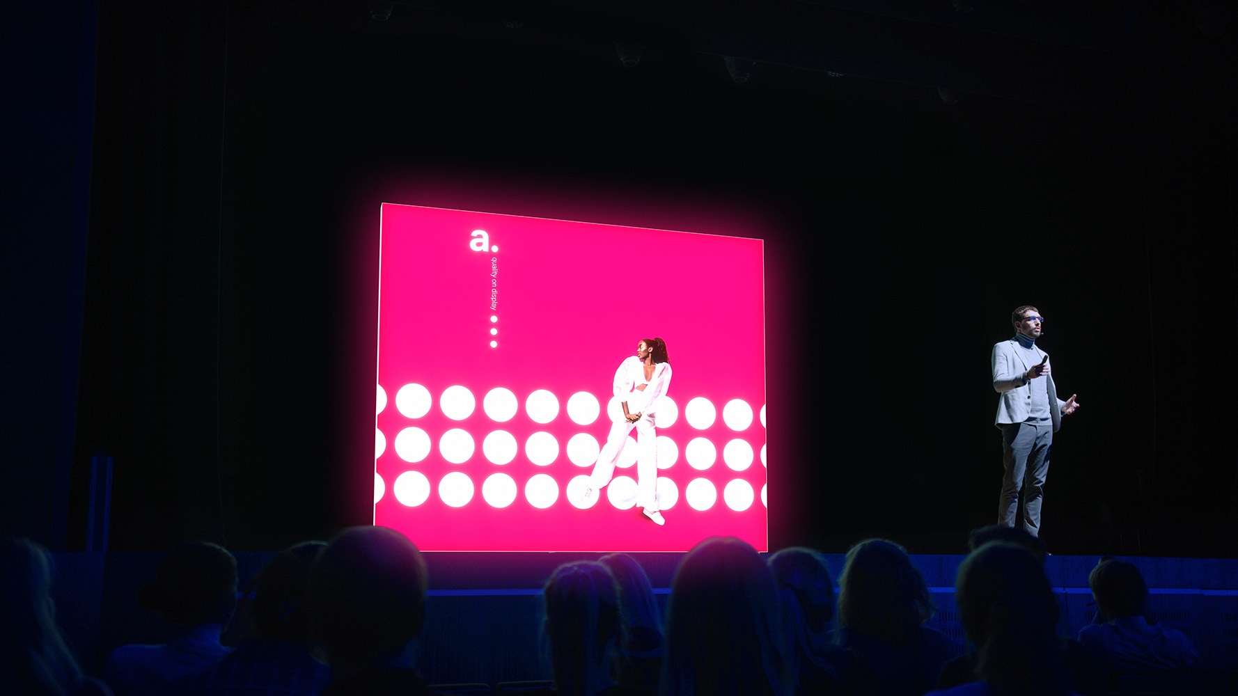 Eventos Profissionais: Com iluminação em ambos os lados, a adFrame Smart permite que se destaque em eventos e encontros profissionais.