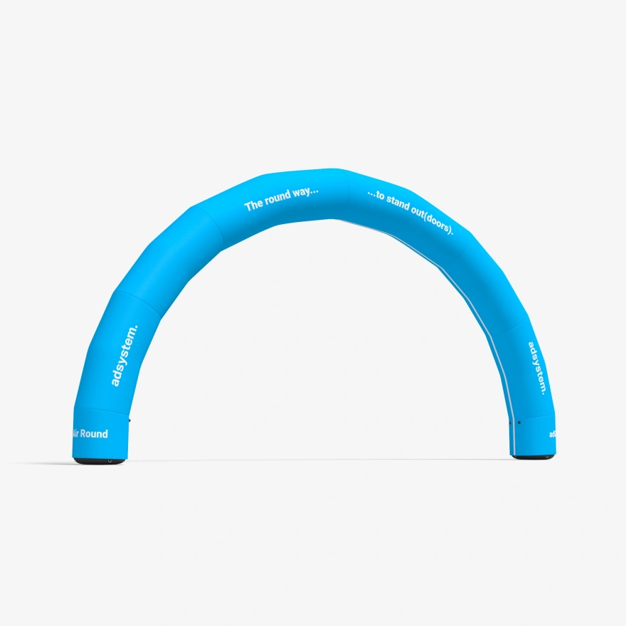 Em eventos ao ar livre, a rapidez e a fiabilidade são essenciais. É por isso que o adGate Round foi desenvolvido para facilitar o trabalho dos organizadores nos momentos mais exigentes. A estrutura de pressão constante mantém o pórtico em perfeito estado durante todo o evento – sem necessidade de reinsuflar. Basta enchê-lo uma vez e dedicar a restante energia ao aperfeiçoamento do seu evento.