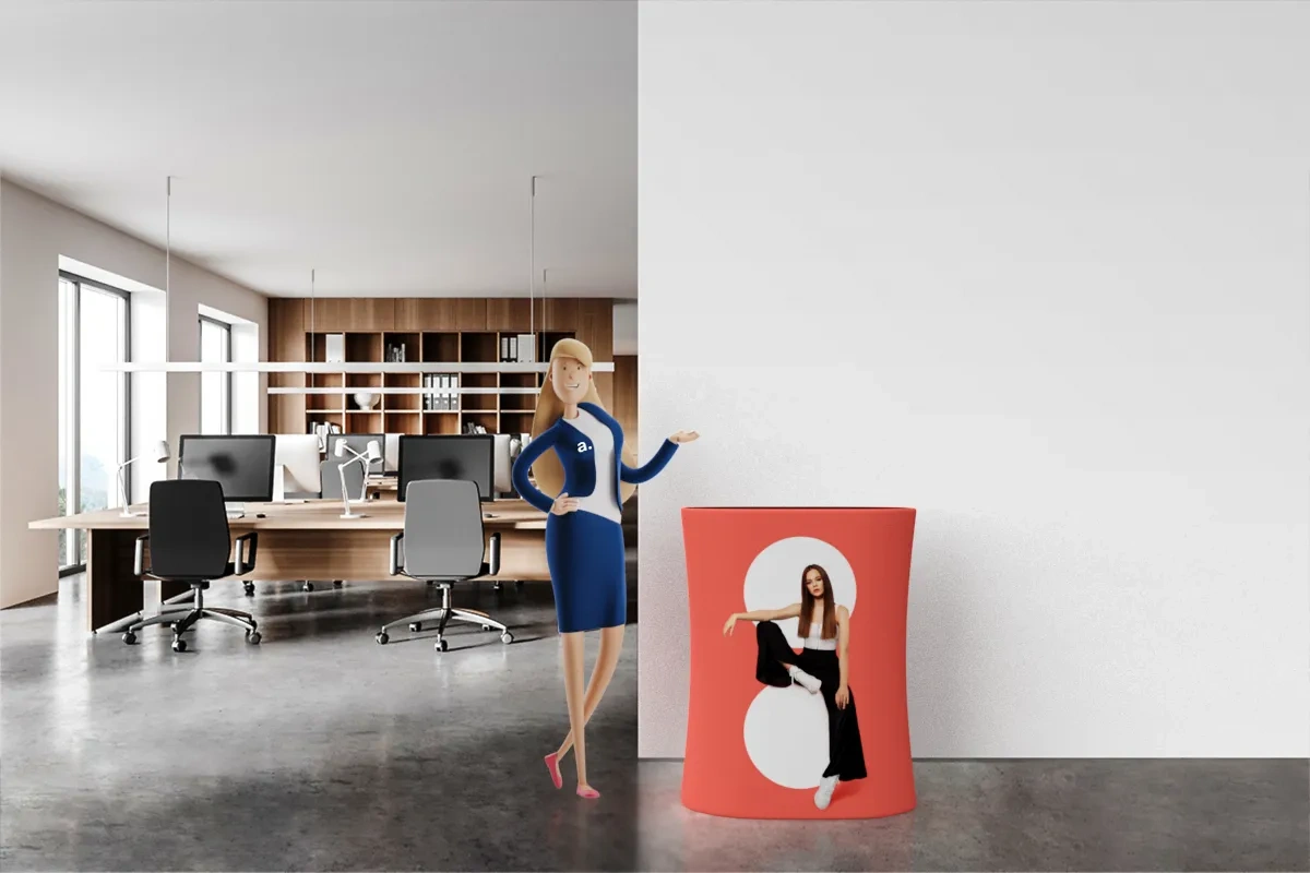 O adTribune Big Quick é um balcão promocional desmontável inovador, equipado com um mecanismo pneumático para montagem instantânea. Ideal para feiras, reuniões de negócios e conferências.