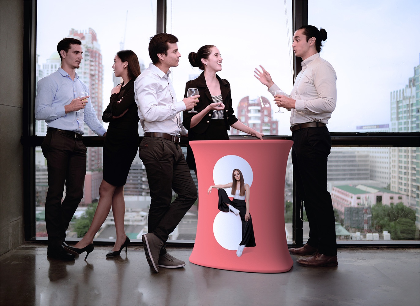 Conferências: Durante as conferências, o adTribune Big Quick oferece um espaço atrativo e funcional. Os gráficos substituíveis permitem ajustar facilmente o visual a diferentes temas e campanhas, aumentando a versatilidade do produto.