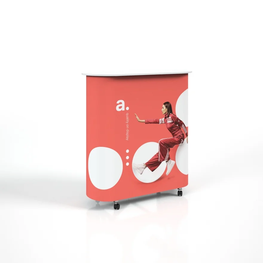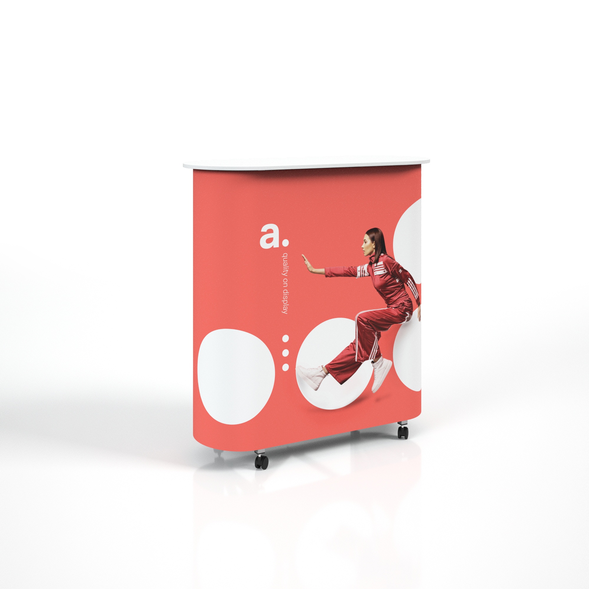 adTribune Elypse Mini é um mini balcão móvel, que na versão mais recente foi equipado com rodas com freios, garantindo fácil movimentação e estabilidade. Com impressões intercambiáveis, pode ser utilizado com sucesso em vários eventos.