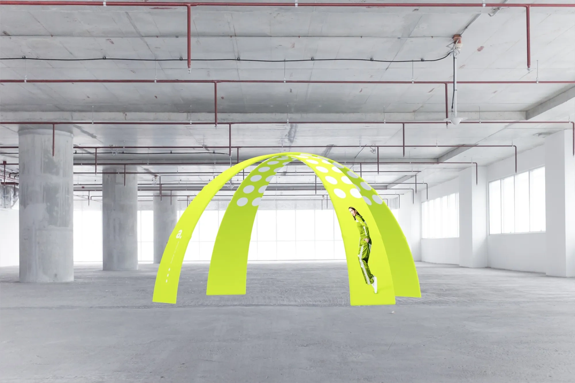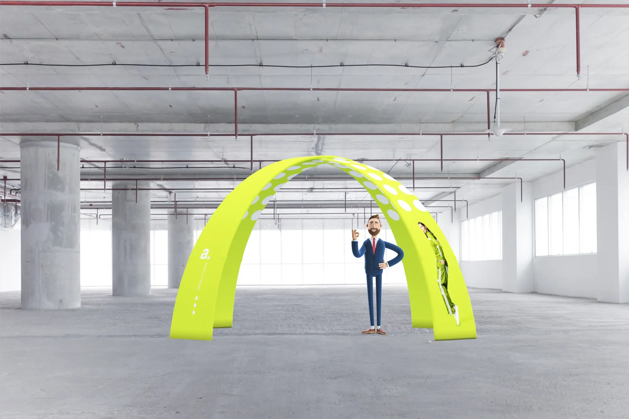 adWall Vario Arch é uma cúpula que resulta do cruzamento de dois pórticos em forma de arco, e que pode ser utilizada em diversas atividades de marketing. Com este produto, é possível sinalizar um stand ou um ponto importante de um evento, ou ainda destacar uma área de apresentação de produtos.