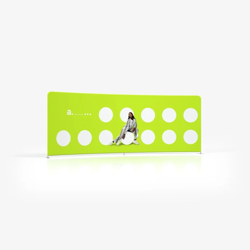 O Pop up Curvo expositor é uma solução prática e elegante para quem procura destacar a marca de forma rápida e eficaz. A estrutura em arco do modelo adWall Vario Curved Light foi concebida para ações promocionais, feiras, apresentações ou decoração corporativa. Feito de tubos de alumínio com apenas 34 mm de diâmetro, combina leveza, estabilidade e facilidade de transporte, sendo ideal para quem precisa montar e desmontar o stand com frequência.