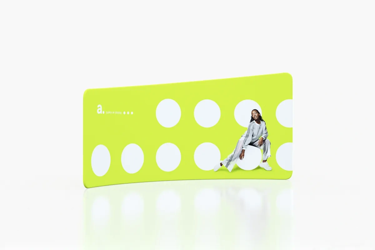 adWall Vario Fall é um photo wall backdrop stand com uma forma subtilmente côncava e um design moderno. O seu formato único e ampla área promocional tornam-no ideal para a apresentação de produtos em diversos ambientes.