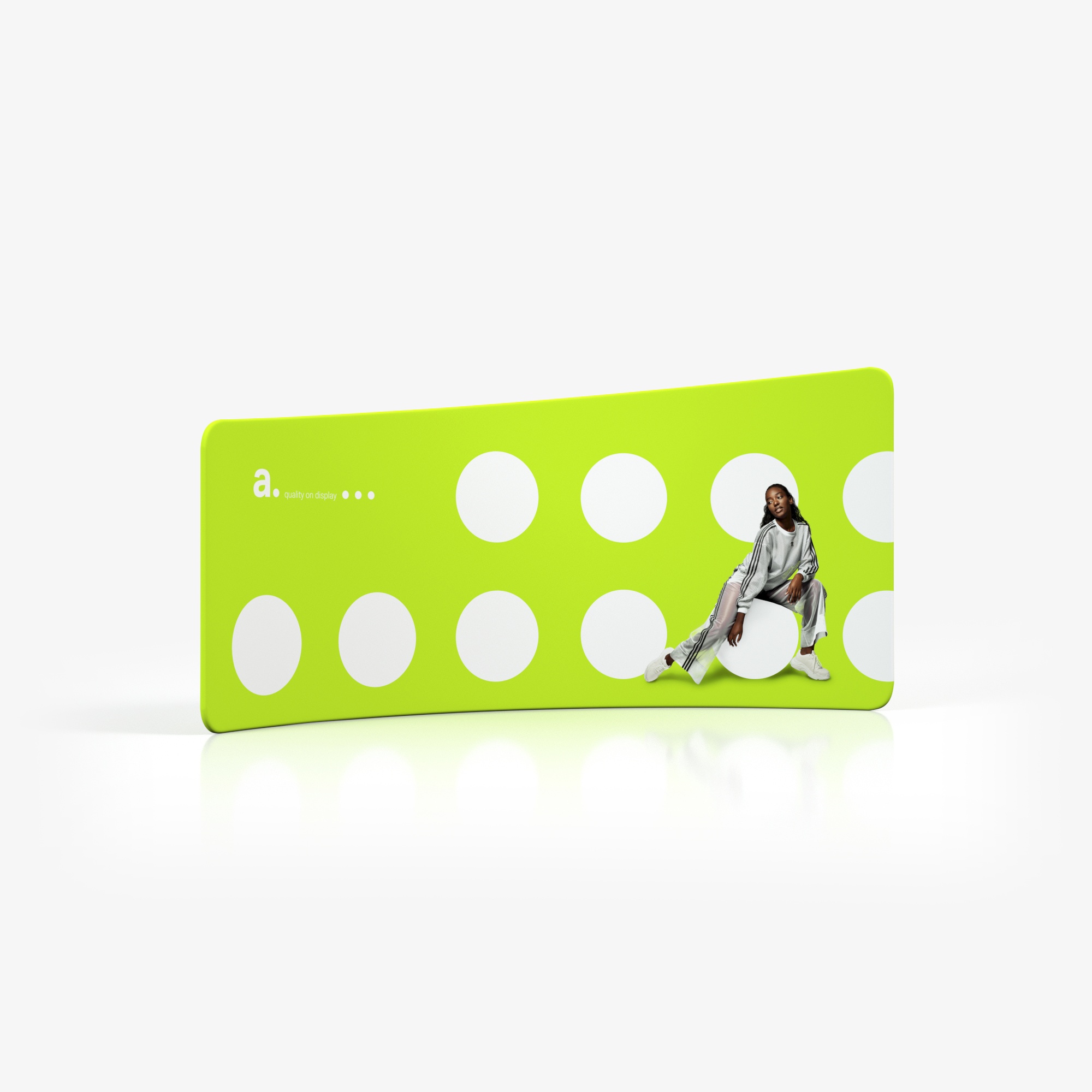 adWall Vario Fall é um photo wall backdrop stand com uma forma subtilmente côncava e um design moderno. O seu formato único e ampla área promocional tornam-no ideal para a apresentação de produtos em diversos ambientes.
