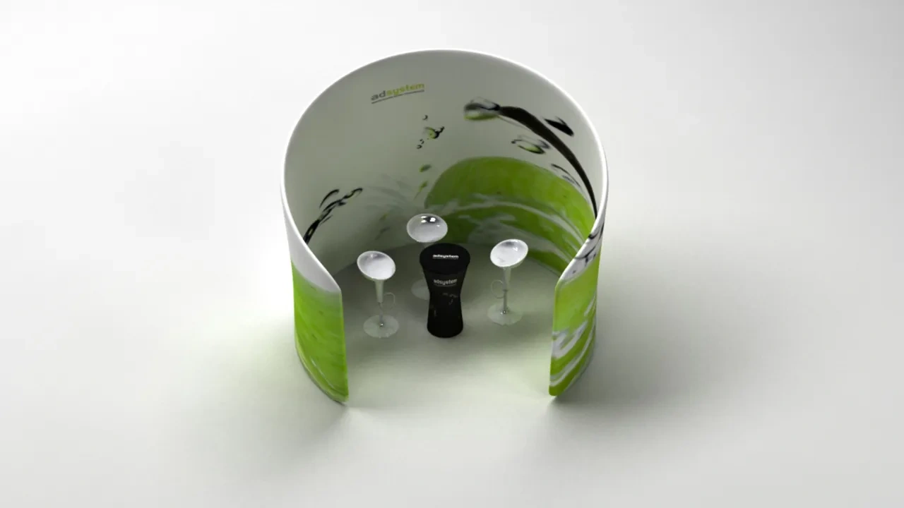 Vario Island é um stand comercial em forma de ilha que se destaca pela sua estrutura incomum. A utilização deste produto proporciona ainda mais visibilidade para a sua marca em diversos eventos de exposição. O produto é composto por uma estrutura de alumínio com encaixes e uma impressão têxtil.