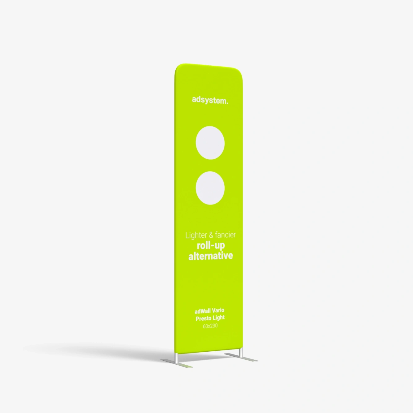 adWall Presto Light é um banner publicitário que permitirá expor a sua marca. Este produto é uma alternativa ideal para os roll-ups em eventos, feiras ou reuniões de negócios. Destaca-se pela sua construção leve e impressão de alta qualidade.