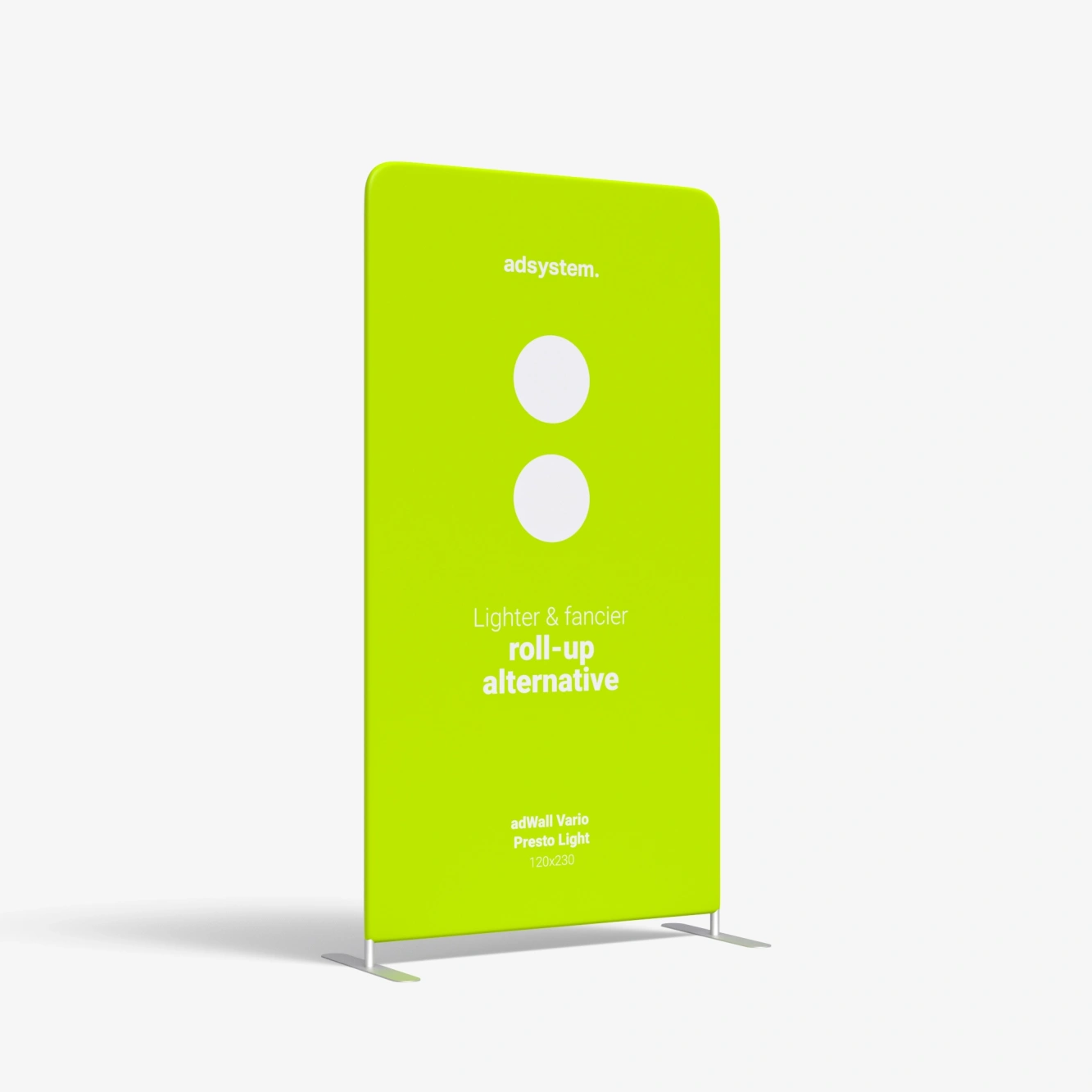 adWall Presto Light é um banner publicitário que permitirá expor a sua marca. Este produto é uma alternativa ideal para os roll-ups em eventos, feiras ou reuniões de negócios. Destaca-se pela sua construção leve e impressão de alta qualidade.