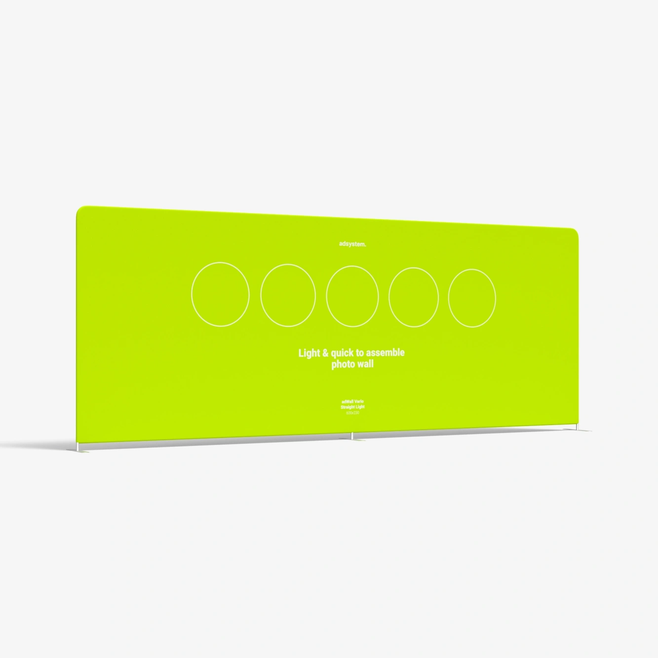 adWall Vario Straight Light é uma parede têxtil reta com impressão, que será um bom apoio para as suas ações promocionais. O produto apresenta uma estrutura leve – o diâmetro do tubo nas versões Light é de apenas 34 mm.