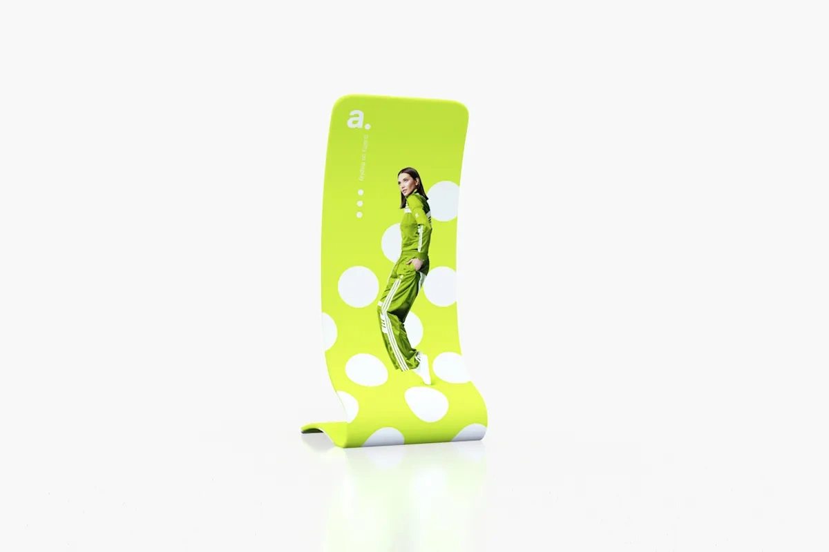 adWall Vario S é um stand publicitário com um formato curvo que atrai a atenção do público de maneira eficaz. Com impressões substituíveis e uma estrutura leve, é uma ferramenta promocional prática e portátil.