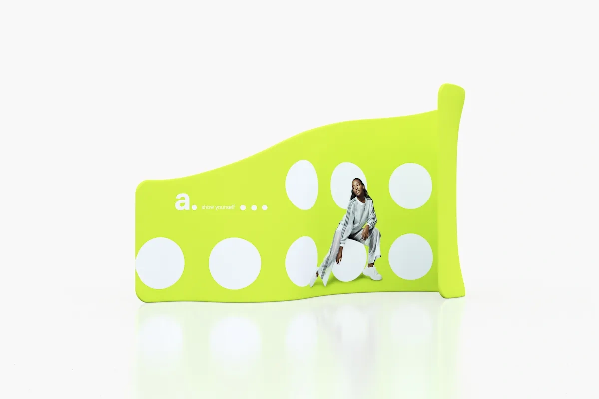 adWall Vario Twist é um backdrop em forma com design curvo, concebido para transformar a sua mensagem promocional em experiências memoráveis. Seja como fundo, elemento decorativo ou ponto central de uma apresentação, este backdrop acrescenta originalidade à sua marca.