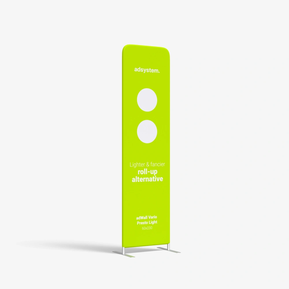 Os backdrops têxteis são um dos sistemas mais versáteis na organização de espaços publicitários. São leves, móveis e permitem criar facilmente uma superfície onde a gráfica se apresenta como num grande ecrã liso. É exatamente aqui que se insere a série Vario – um sistema que combina estrutura simples com tecido elástico e oferece enormes possibilidades de comunicação.