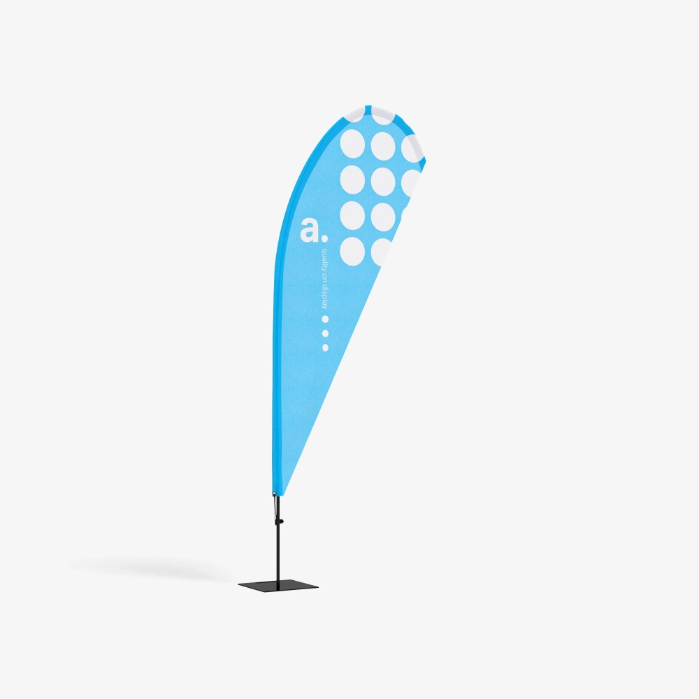 Uma bandeira publicidade funciona como um farol para o seu stand. É visível de longe, mesmo através da neve ou da névoa, e o seu movimento atrai olhares. Bem desenhada e fabricada, pode manter-se em ótimo estado durante toda a temporada.