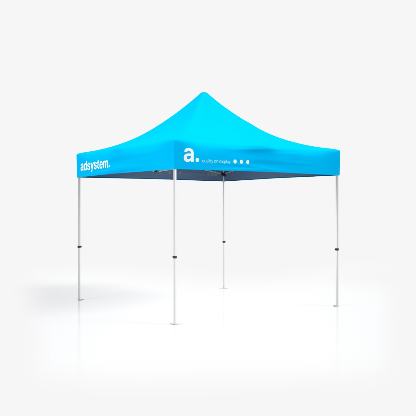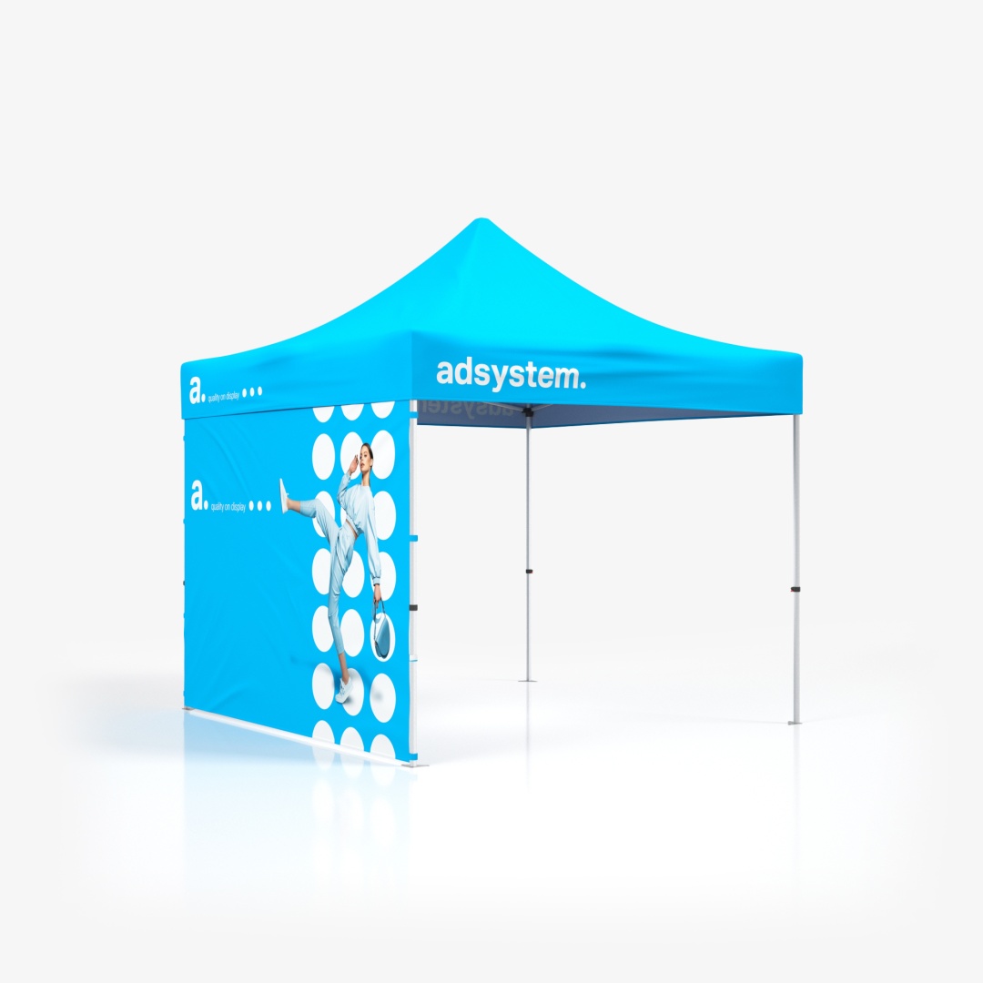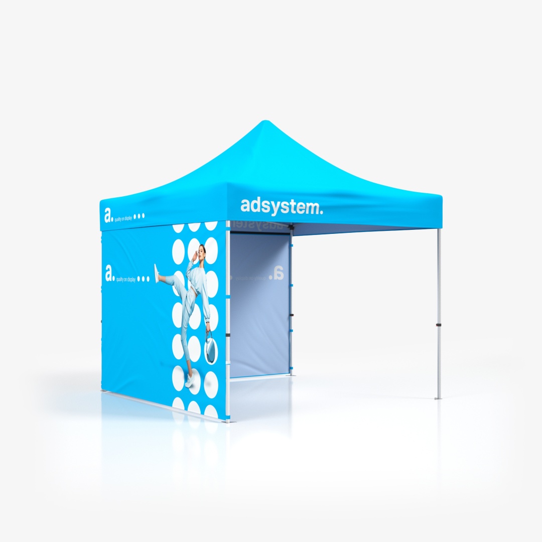 As tendas personalizadas para eventos adTent Express são produtos versáteis, ideais para diferentes tipos de eventos ao ar livre ou em espaços interiores. Estas tendas permitem proteger o seu stand do sol e da chuva, além de definir os limites do espaço. Com impressões personalizadas dos gráficos da sua marca, as tendas tornam-se um suporte publicitário eficaz, chamando a atenção e atraindo visitantes ao seu stand. O produto é composto com uma estrutura, cujo teto é composto por varas de alumínio conectadas entre elas, permitindo uma montagem rápida e prática, num sistema POP UP. O conjunto inclui ainda uma bolsa flexível com rodas, que facilita o transporte e o armazenamento da tenda.