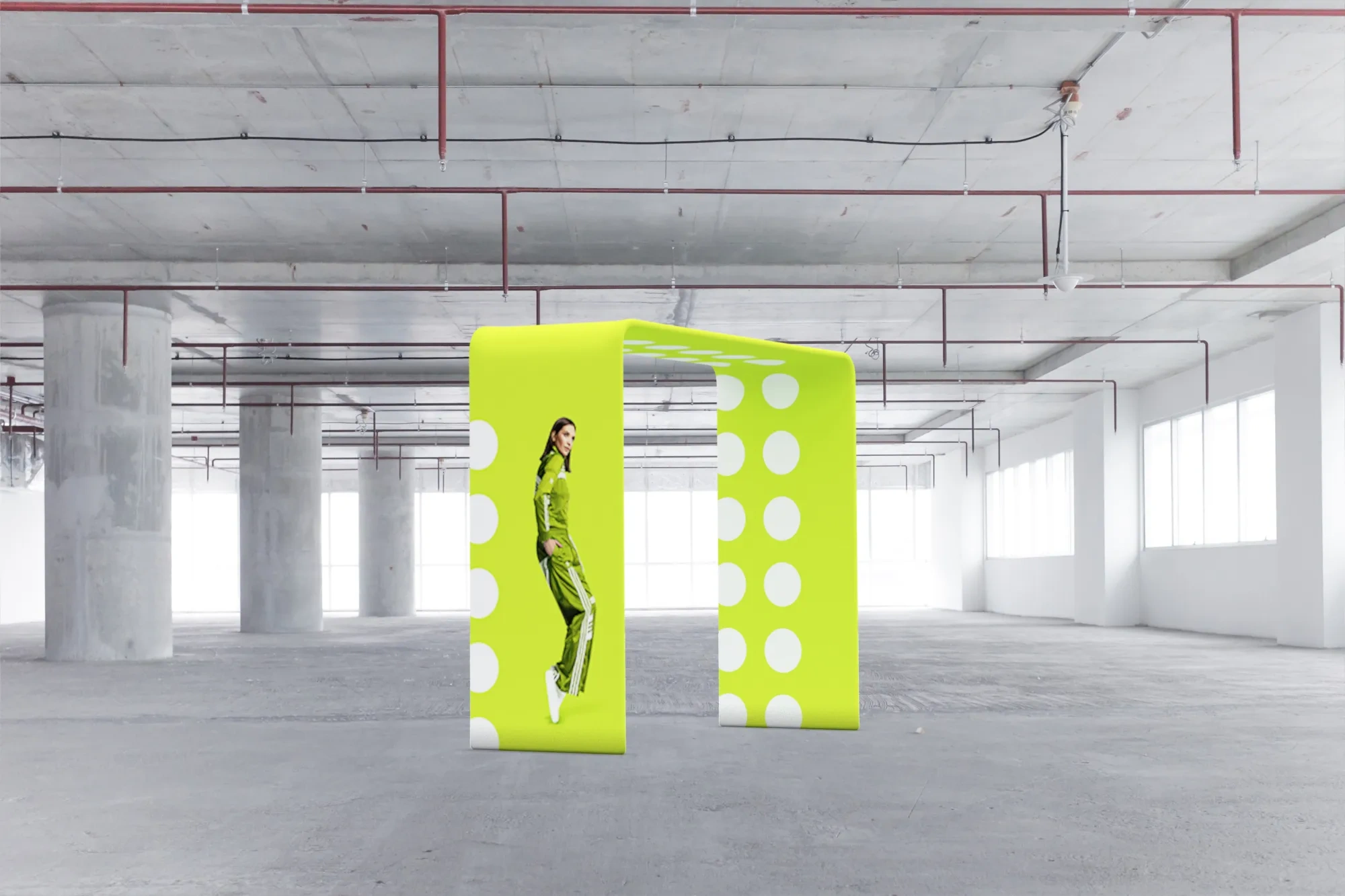 adWall Vario Bow é um pórtico publicitário com logotipo, que você pode utilizar como meio de comunicação promocional. Ele é ideal para diversos eventos como feiras e apresentações de produtos. A estrutura consiste em uma combinação de perfis de alumínio e uma impressão têxtil personalizada.