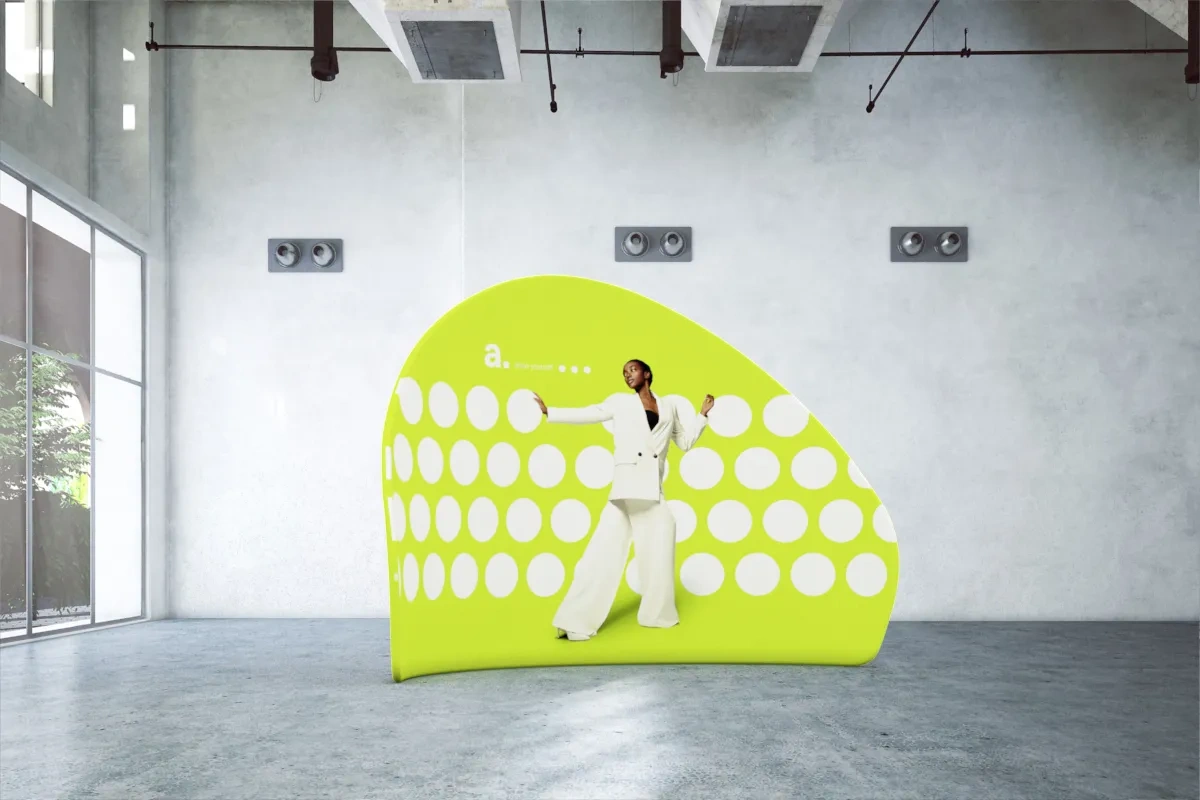 Feiras e exposições: O formato único do promotional backdrop não só chama a atenção, como também cria um espaço ideal para expor produtos ou montar o seu stand promocional.