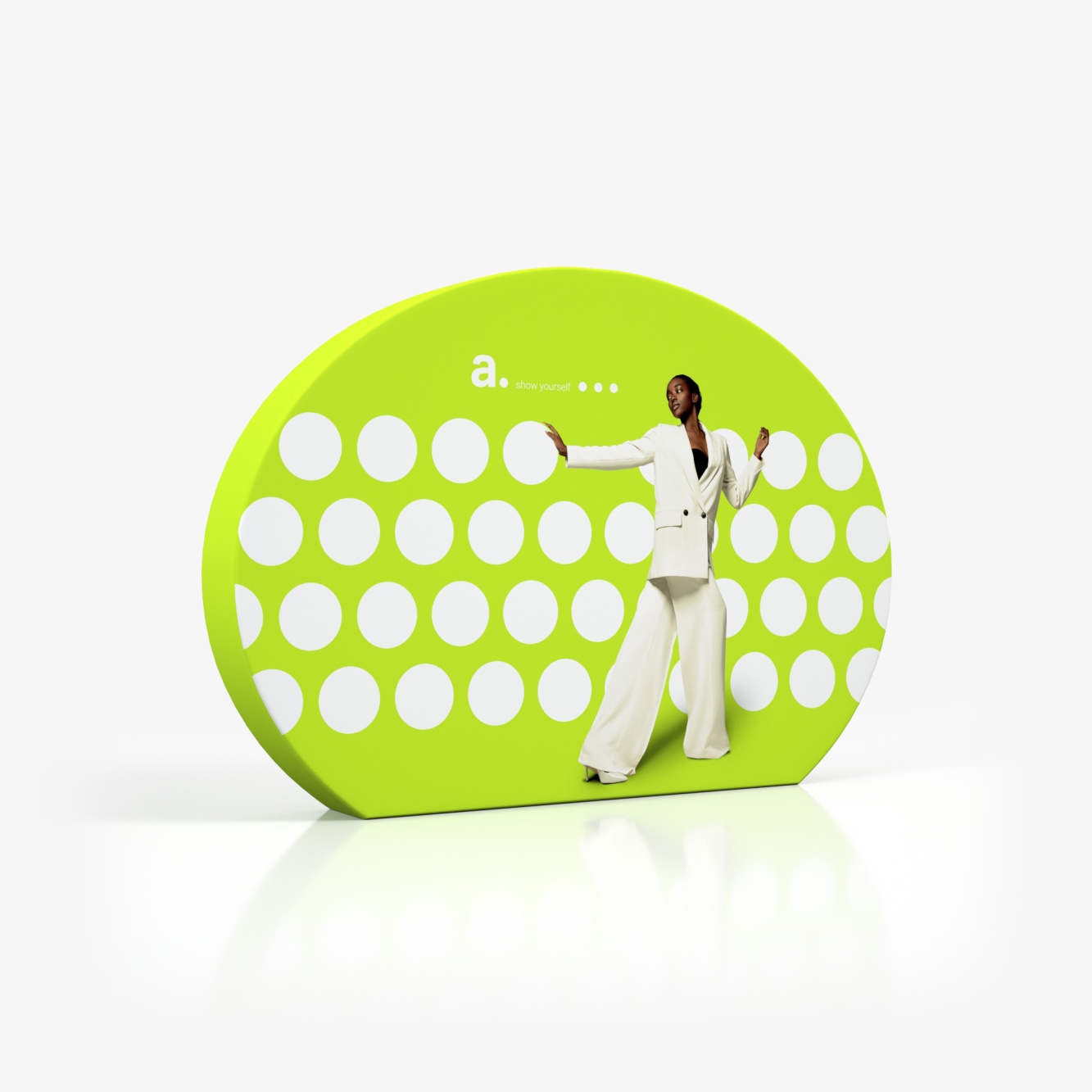 Vario QRing é um social media backdrop com um formato e design únicos, que atrai a atenção dos participantes em qualquer evento. Graças ao seu sistema de montagem sem recurso a ferramentas, pode preparar o seu stand de forma rápida e eficiente. A impressão têxtil de alta qualidade destaca a sua marca de maneira impressionante.