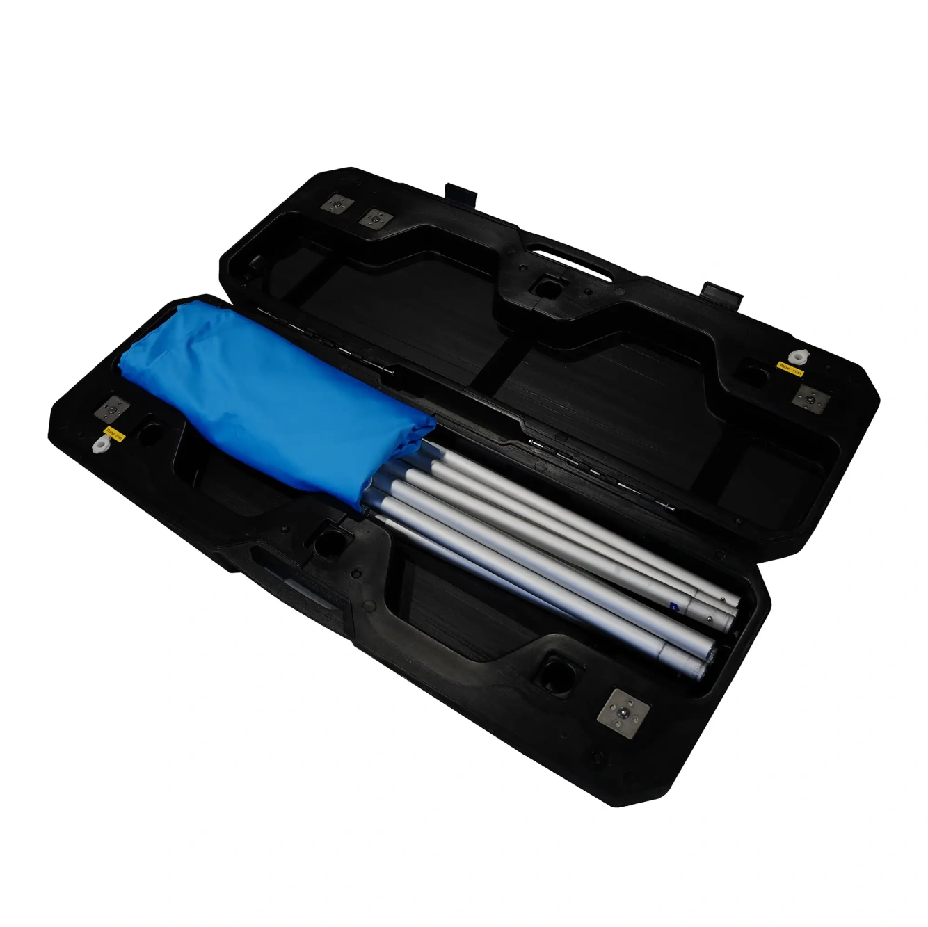 adWall Presto Outdoor é um expositor exterior desenvolvido especialmente para eventos ao ar livre. Graças à sua estrutura sólida e à base que pode ser preenchida com água, garante estabilidade mesmo em superfícies irregulares como areia ou relva. É uma solução fiável para organizadores que procuram um suporte publicitário resistente e fácil de transportar.