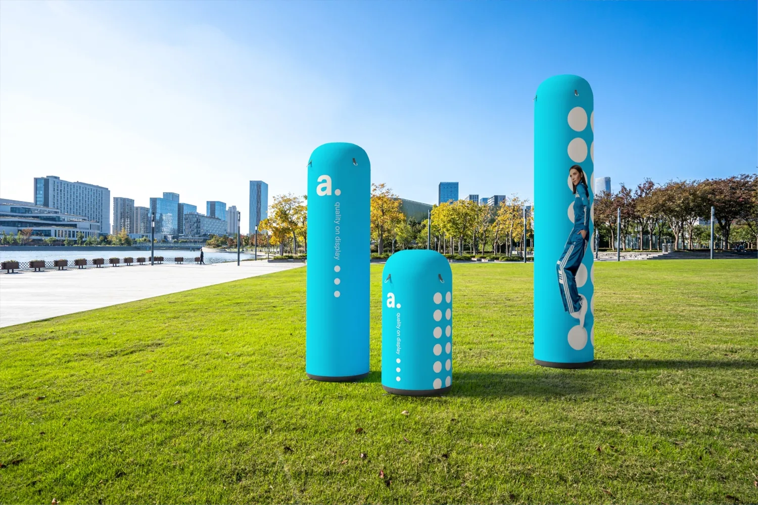 adColumn Air is an inflatable advertising column that perfectly serves as an advertising support and a signage element for events. Thanks to its constant-pressure construction and waterproof material, adColumn Air advertising columns are durable and reliable in any weather conditions. The structure is equipped with a safety valve that maintains an optimal pressure level throughout its entire use.