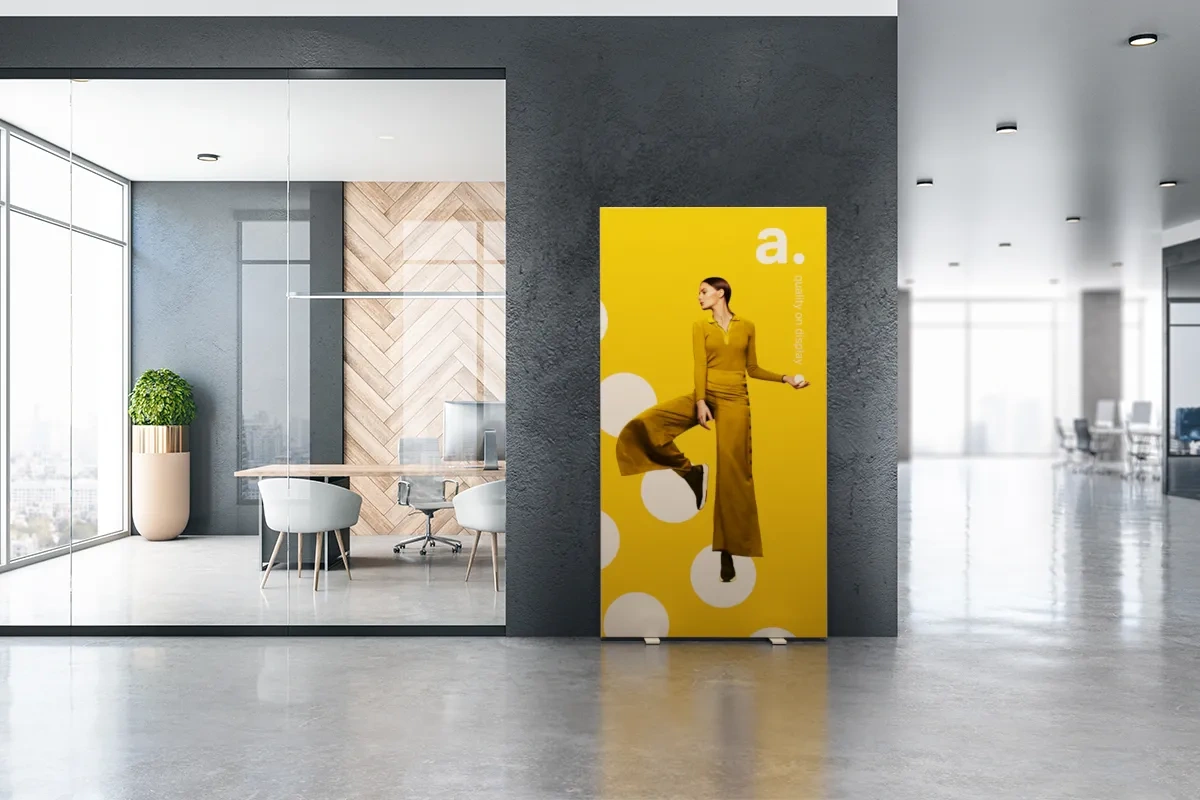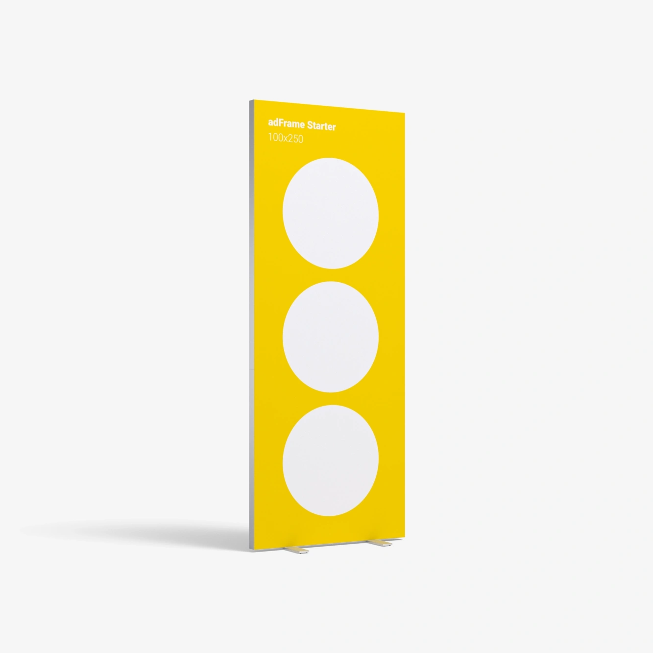adFrame Starter é uma moldura têxtil para interiores autoportante, pensada como uma alternativa atraente aos roll-ups tradicionais. A moldura de alumínio tem 6,5 cm de largura, garantindo estabilidade mesmo nos pavilhões de feiras mais movimentados. A montagem é totalmente livre de ferramentas: os perfis conectam-se facilmente através de conectores de plástico deslizantes. O conjunto inclui uma bolsa de transporte sem rodas, para que possa levar a moldura com facilidade para os seus próximos eventos.