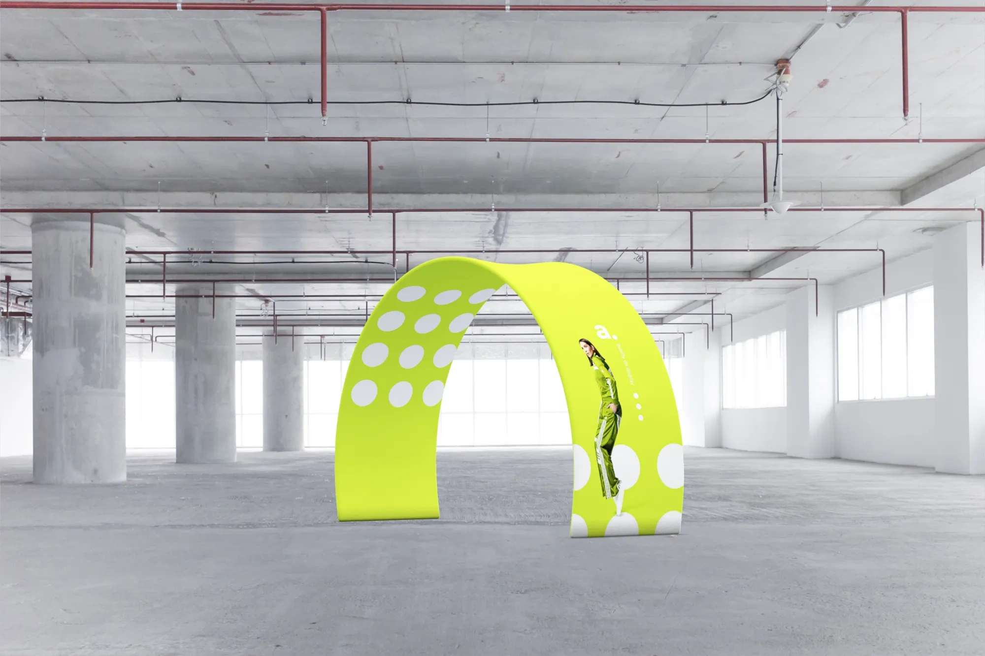 adWall Vario Arch C é um pórtico publicitário têxtil, que será um apoio valioso para suas ações promocionais. Com ele, você pode destacar seu estande ou produto ou sinalizar seu evento. O pórtico publicitário têxtil consiste em uma estrutura de alumínio e impressões têxteis personalizadas com seus gráficos.