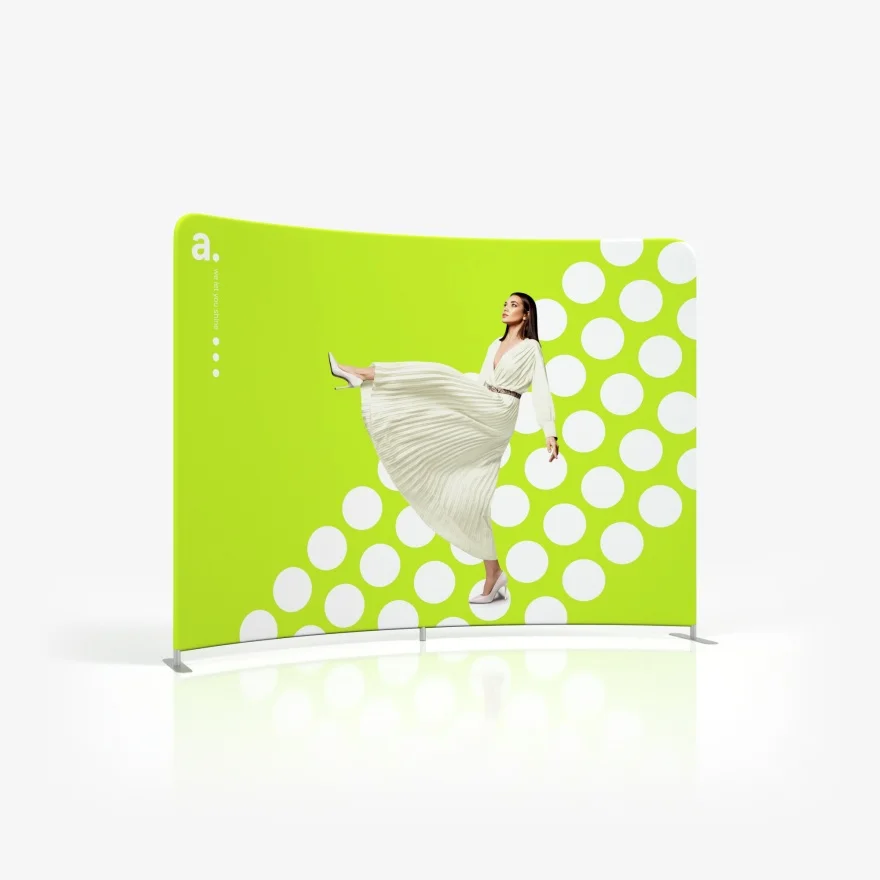 O Pop up Curvo expositor é uma solução prática e elegante para quem procura destacar a marca de forma rápida e eficaz. A estrutura em arco do modelo adWall Vario Curved Light foi concebida para ações promocionais, feiras, apresentações ou decoração corporativa. Feito de tubos de alumínio com apenas 34 mm de diâmetro, combina leveza, estabilidade e facilidade de transporte, sendo ideal para quem precisa montar e desmontar o stand com frequência.