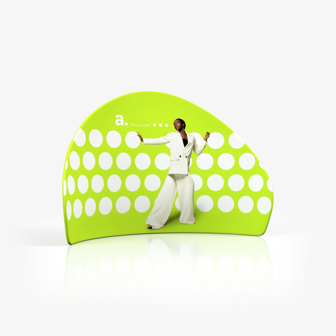 adWall Vario Peak é um promotional backdrop com decoração em tecido que se destaca pelo seu formato exclusivo e pela capacidade de personalização. Ideal para promover a sua marca, é leve, portátil e fácil de montar.