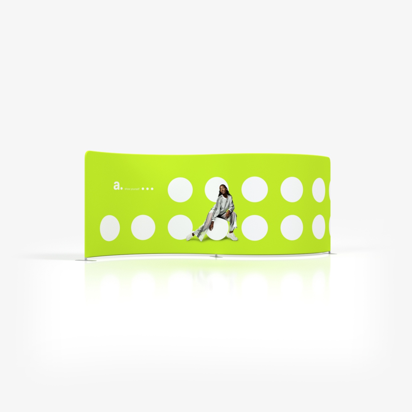 adWall Vario Serpentine é um corporate events photo backdrop com uma forma ondulada. Este design permite criar um ambiente visualmente atrativo em feiras, conferências ou eventos promocionais.