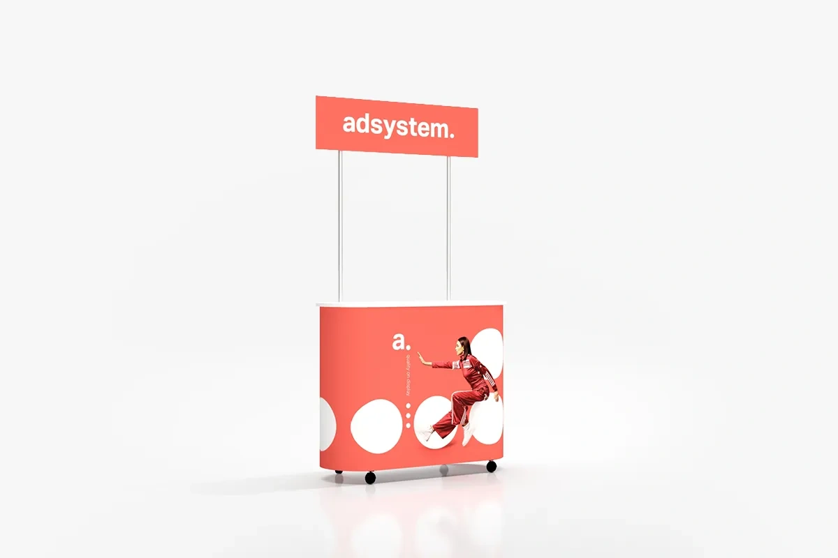 O adBox Elypse é um stand de degustação moderno. Graças à sua estrutura com rodas e montagem rápida, é a solução ideal para degustações e ações promocionais em lojas e eventos.