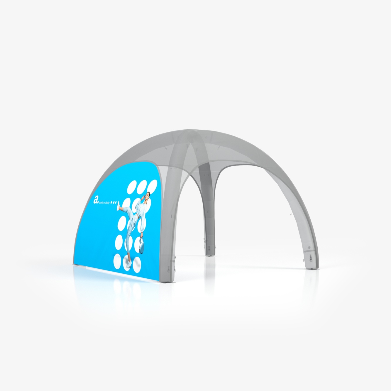 As impressões para adTent Air Premium são feitas com materiais de alta qualidade, adaptados para condições externas. Compatíveis com o modelo adTent Air Premium, os gráficos personalizados ajustam-se perfeitamente à estrutura da tenda, garantindo uma aparência estética e profissional.